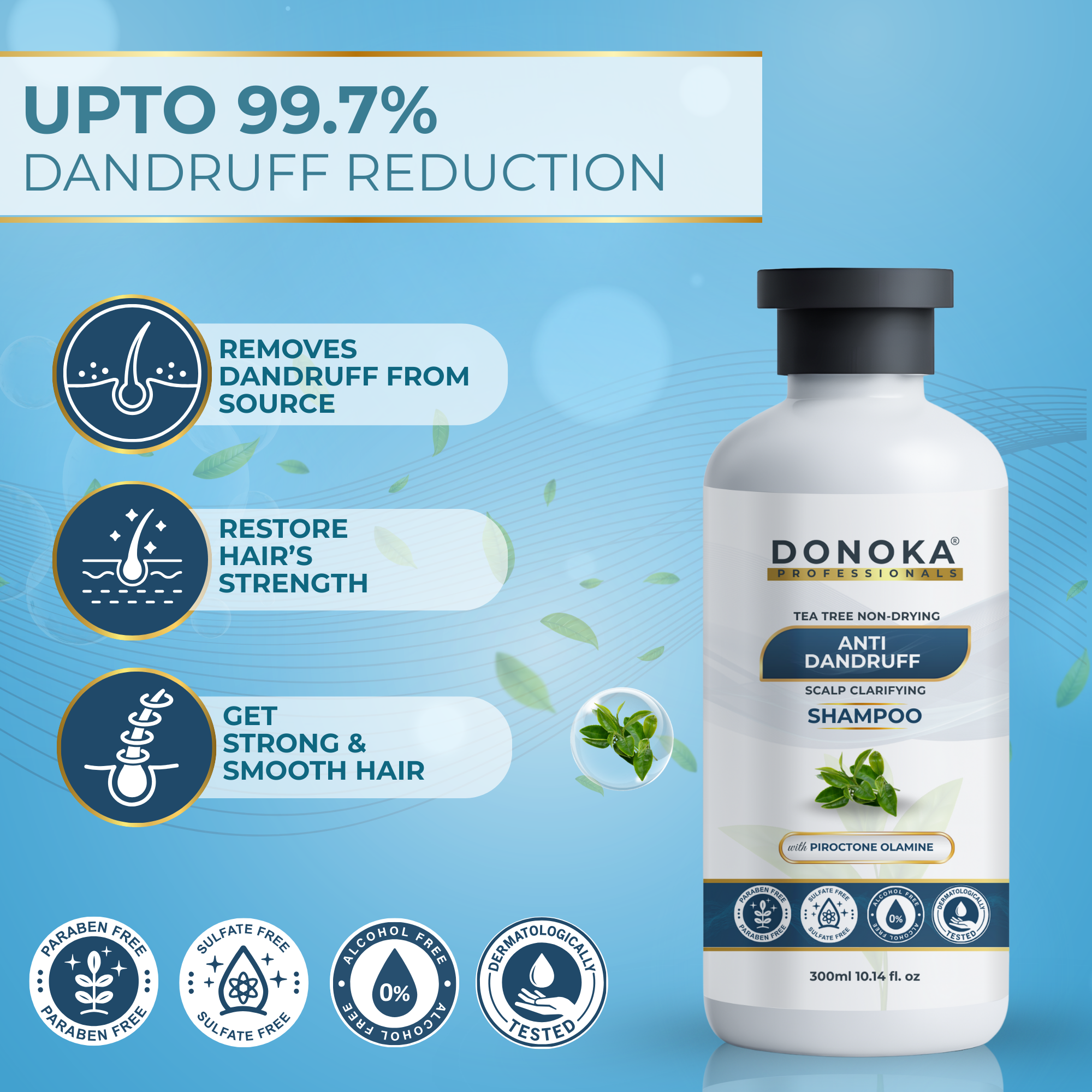 DONOKA Pro Anti Dandruff Scalp clarifying Shampoo with Tea Tree Extract, Piroctone olamine + Jojoba Seed Oil