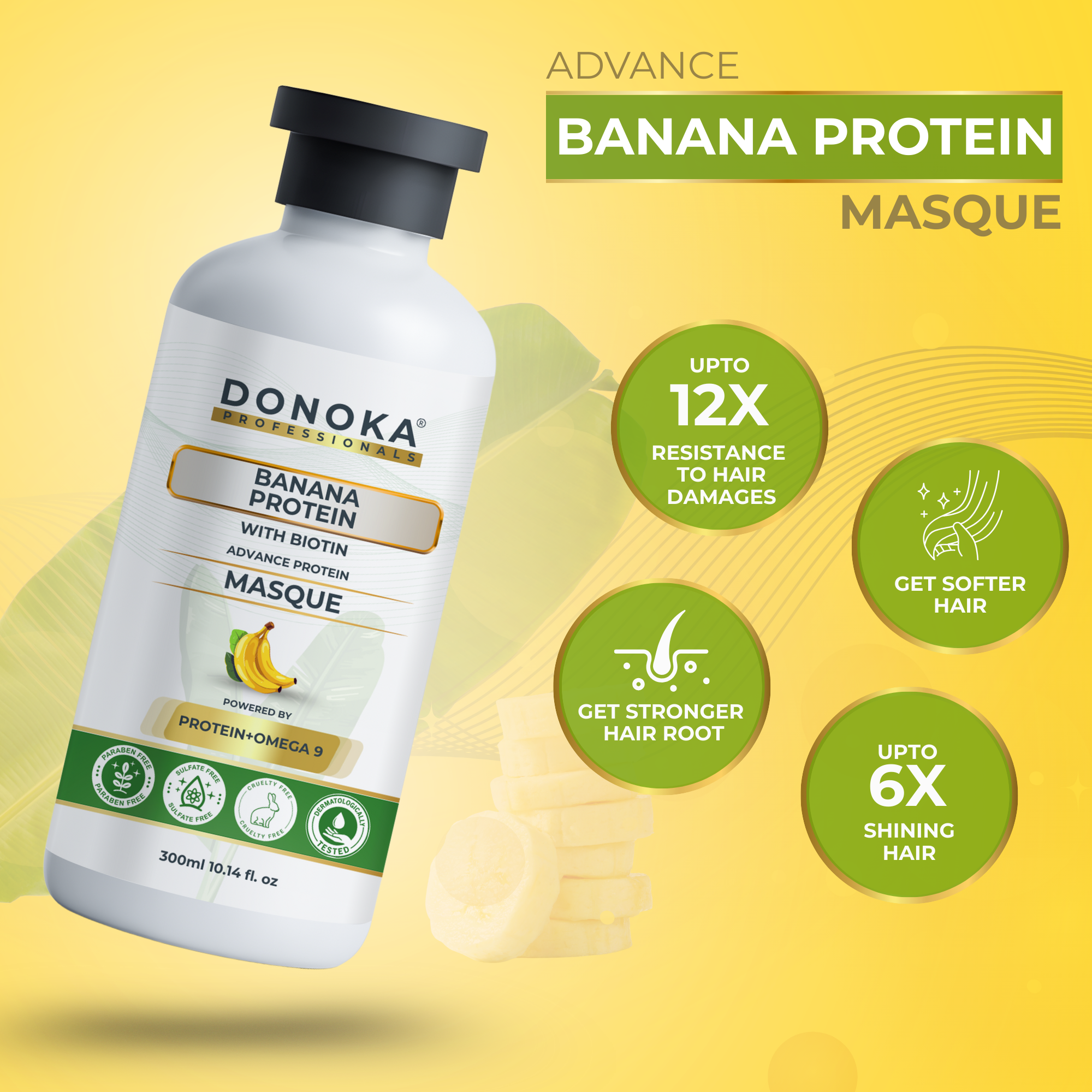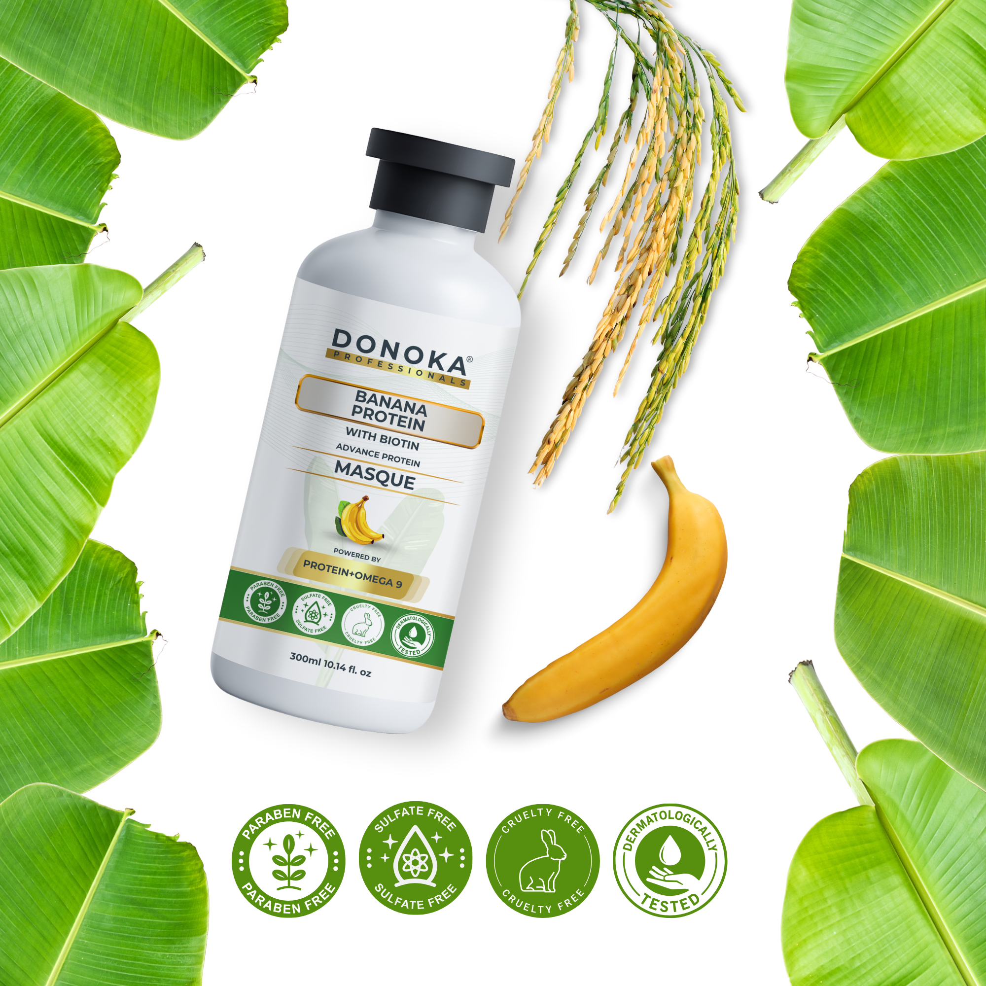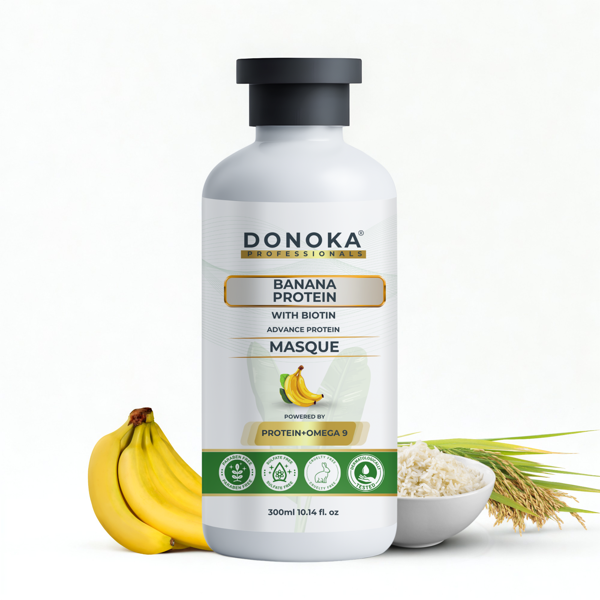 DONOKA Pro Banana Protein + Omega 9 + Rice Water Hair Masque + Biotin