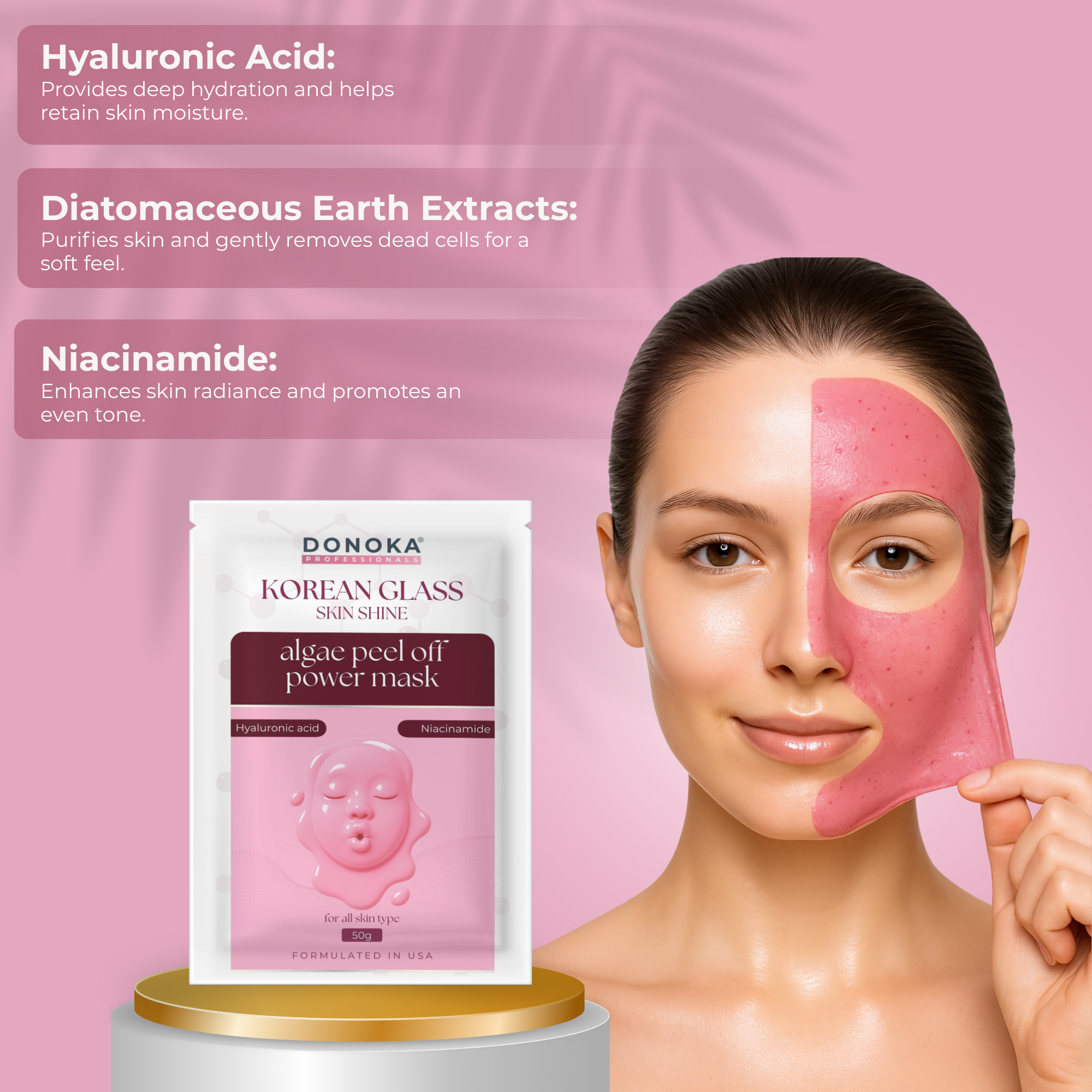 DONOKA Pro Korean Glass Skin Shine Algae Peel Off Power Rubber Masque | Hyaluronic acid + Niacinamide